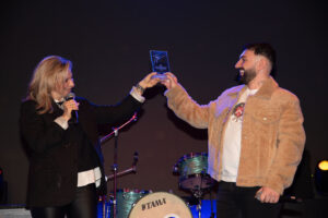 Η Διευθύνουσα Σύμβουλος της Minos EMI, a Universal Music Company Μαργαρίτα Μάτσα μίλησε με τα καλύτερα λόγια για τον TOQUEL και την επιτυχία που σημειώνει, τονίζοντας μεταξύ άλλων πως η επιτυχία του δεν είναι τυχαία αλλά αποτέλεσμα σκληρής δουλειάς, και παρέδωσε τις τιμητικές πλακέτες στον TOQUEL.